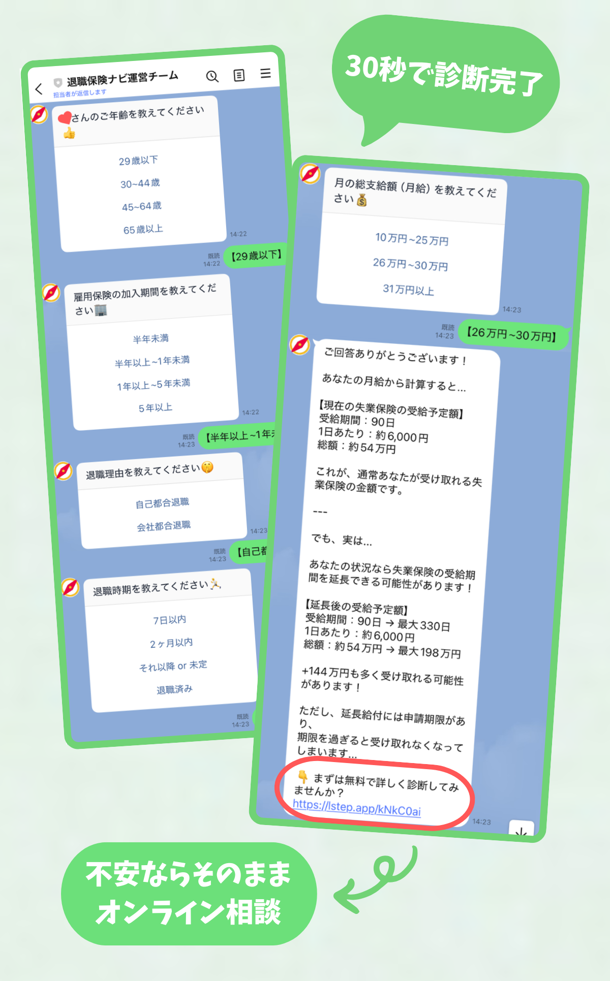 「LINE登録したら5分で診断結果が届きました!まさか180万円も受給できる可能性があるなんて…早速無料相談予約しました✨」