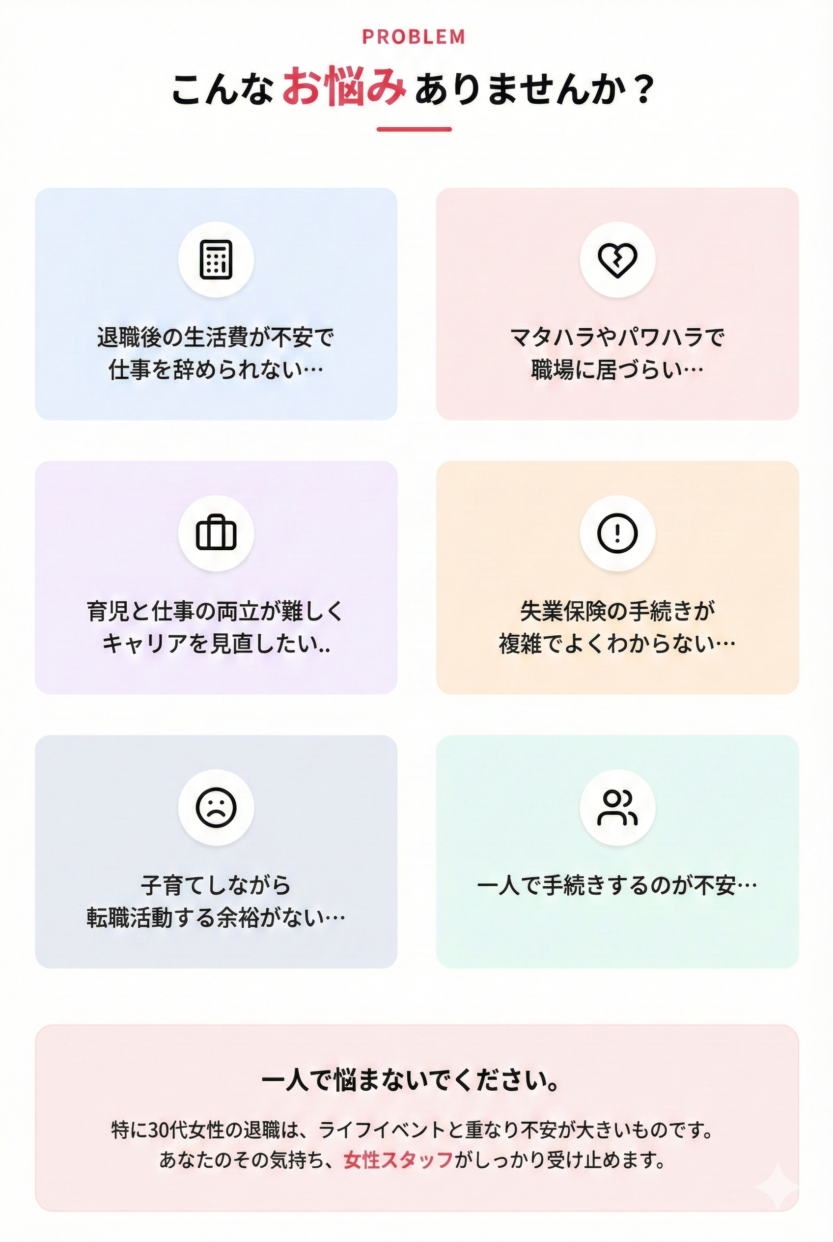 妊娠、出産、育児、介護など、女性特有のライフイベントに関する相談も対応。あなたの状況に合わせた最適なプランをご提案します。