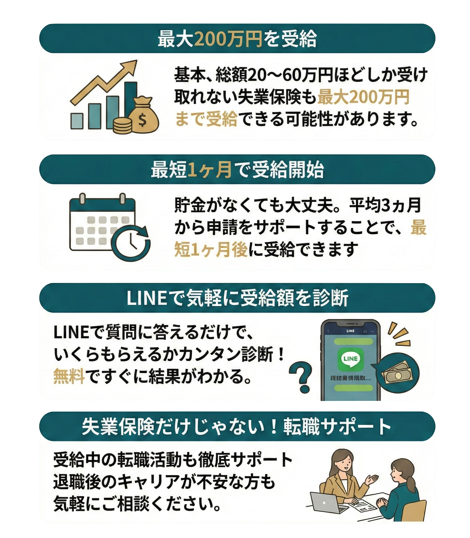 退職保険ナビが開発した診断ツールで、受給額や受給対象かを無料で確認できます!